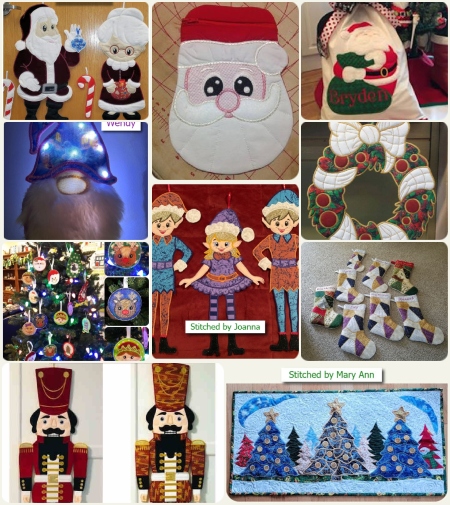 Joanna stitched this sweet Elf family using Large Applique Eddie & Effie Elf designs — perfect festive fun!