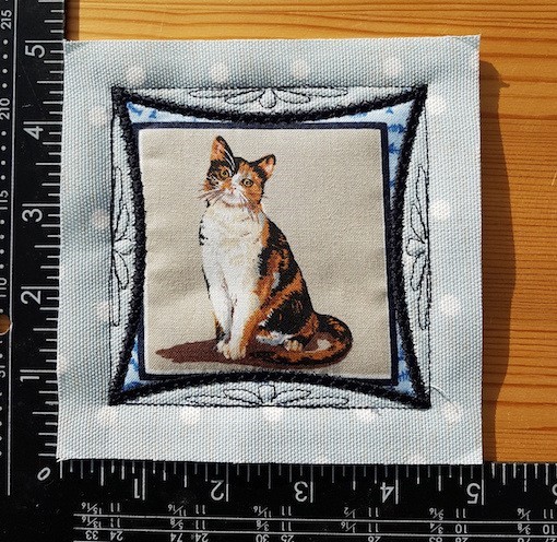 The next step of the orange peel pattern secures the fancy appliqué panel in place.