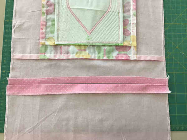 Once my front panel was complete I chose to press a piece of parlan (fabric style iron on interfacing) to the back to give a nice finish on the front.