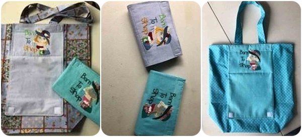 - Bag closer – cut one (in this case lining fabric) to be embroidered 14”x10”
