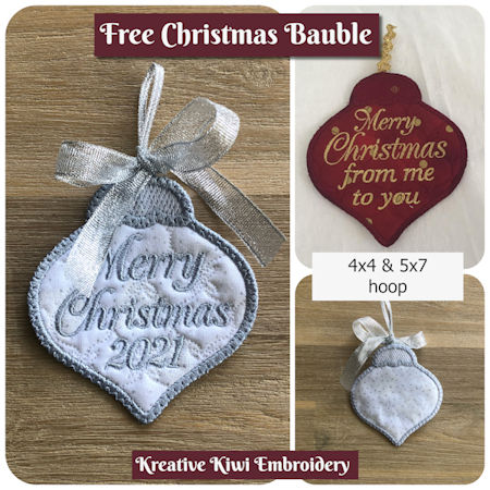 Enjoy this free Bauble for the 4x4 and 5x7 hoop