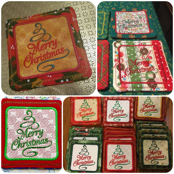 Create this simple Free Merry Christmas Coasters completely in-the-hoop – no hand sewing required.