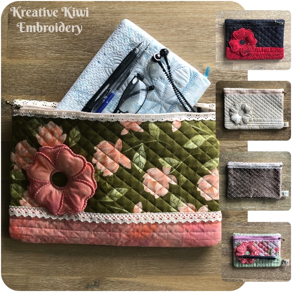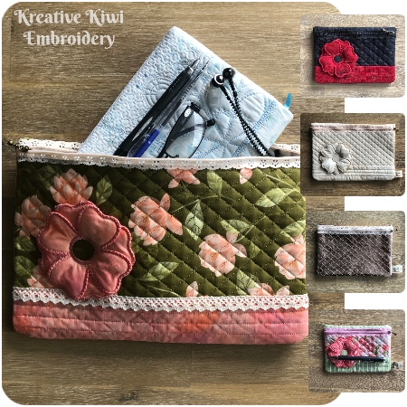 - The bag pattern includes a quilted front with optional contrast band and/or 3D flower – and an optional Quilted back