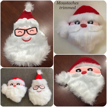 These two adorable Santas are ‘packing heat’ or they will be if you choose to fill them with wheat and heat in the microwave! Alternatively, they can be stuffed with cushion filling to make ornaments. You may even choose to leave them empty.