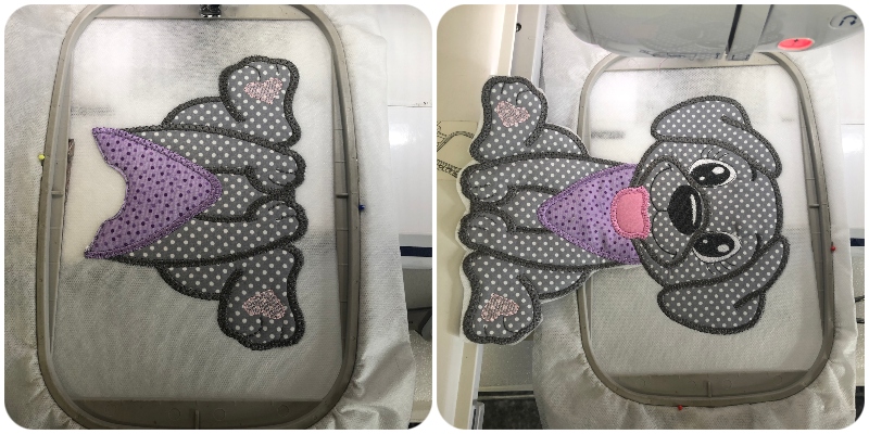 Our Large Applique Dog is created using our join-in the hoop method, so you can easily make a Dog larger than your hoop, with no additional sewing needed.