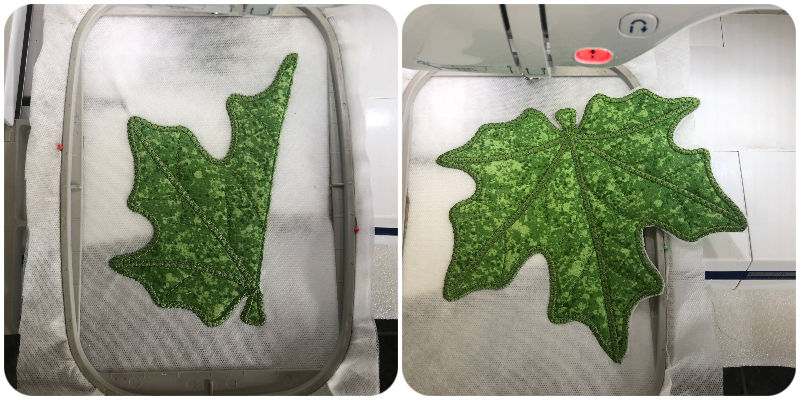 In case you are new to the world of large applique designs, let me fill you in. A large applique design is one which needs 2 or more hoopings, with the joining completed as you stitch, in the hoop. The beauty of my large applique designs is you can quickly create a 3D Design much larger than your hoop, and then add them to quilt blocks, reading pillows or pretty much any item as you like.