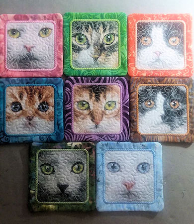 Calling all Cat Lovers - How cute are these Coasters stitched by Jeannine?