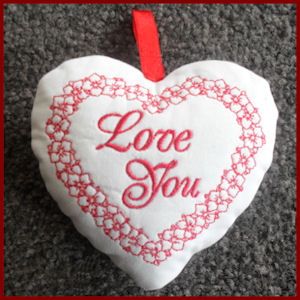 I just loved this artwork. My head was filled with possibilities. The 5 floral hearts are included in 4x4 5x5 6x6 and 8x8 sizes. You can add an initial to the smaller sizes, and you have a beautiful monogram. The larger sizes can be used as frames for other designs - make yourself a heart cushion.