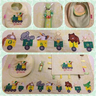 Now my apologies for using my computer images - while the designs are so cute on the polar fleece blanket, when I scanned them in, they just look yuck.