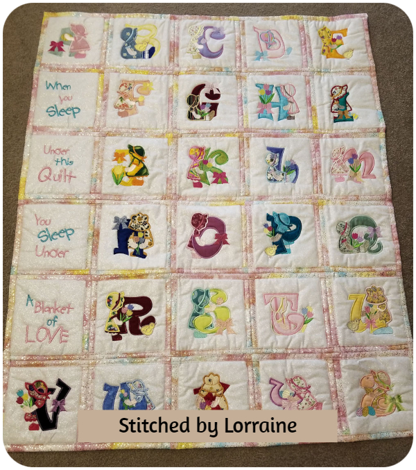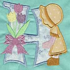 This absolutely gorgeous set of Easter/Springtime Sunbonnets will all fit your 4x4 hoop, and together with the main 26 Sunbonnets, we have also included 26 lower case filled letters to maximise the versatility of this set. Imagine quilts, wall hangings, personalised Easter Goodie Bags or tote bags for little ones .